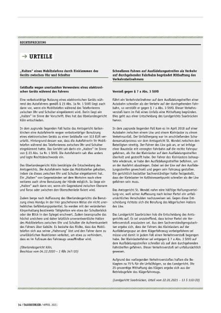 14 ⁄ TAXIKURIER ⁄ APRIL 2021
