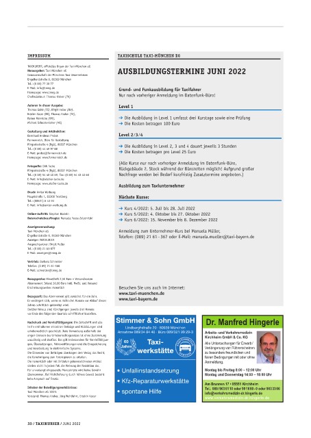 Herausgeber: Taxi-München eG AUSBILDUNGSTERMINE JUNI 2022